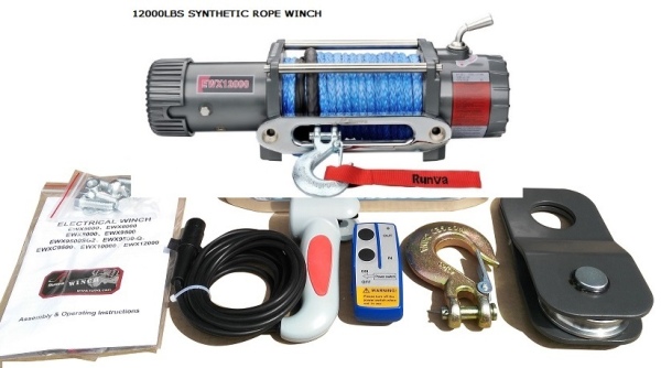12000 LBS Winch with Synthetic Rope + 2 Remotes (Wire+Wireless)